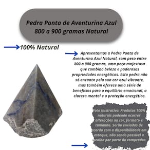 Apresentamos a Pedra Ponta Geradora de Energia Aventurina Azul, com peso entre 800g a 900g. Com sua tonalidade azul vibrante, esta pedra é reconhecida por suas poderosas propriedades energéticas, proporcionando equilíbrio e clareza mental. Benefícios da Aventurina Azul: