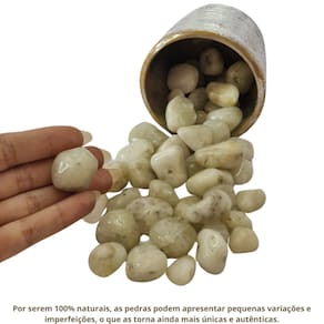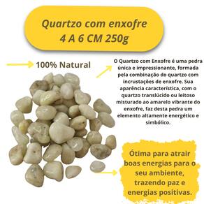 Observações Importantes: Por ser uma pedra natural, o Quartzo com Enxofre pode apresentar variações nas cores, tamanhos, formatos e peso das pedras. No entanto, garantimos que todas as pedras são cuidadosamente por nossos especialistas para oferecer a melhor qualidade e pureza possíveis. As pedras incluídas no pacote possuem tamanhos variando entre 4 e 6 cm. Para garantir o peso de 250g, o pacote será composto predominantemente por pedras de Quartzo com Enxofre de excelente qualidade, podendo conter também pedras de outros tipos de Quartzo ou cristais de qualidade similar, assegurando o peso anunciado. Qualidade Garantida: As pedras são polidas e selecionadas especialmente para colecionadores e entusiastas de cristais.