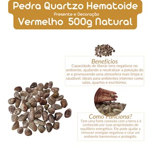 Observações Importantes: Por ser uma pedra natural, o Quartzo Hematoide Vermelho pode apresentar variações nas cores, tamanhos, formatos e peso das pedras. No entanto, garantimos que todas as pedras são cuidadosamente selecionadas por nossos especialistas para oferecer a melhor qualidade e pureza possíveis. Tamanho Aproximado: As pedras incluídas no pacote possuem tamanhos variando entre 1 e 2 cm. Para garantir o peso de 500G o, o pacote será composto predominantemente por pedras de Quartzo Hematoide Vermelho de excelente qualidade, podendo conter também pedras de outros tipos de Quartzo ou cristais de qualidade similar, assegurando o peso anunciado. Qualidade Garantida: As pedras são polidas e selecionadas especialmente para colecionadores e entusiastas de cristais.