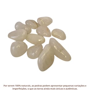 Observações Importantes: Por ser uma pedra natural, o Quartzo Leitoso pode apresentar variações nas cores, tamanhos, formatos e peso das pedras. No entanto, garantimos que todas as pedras são cuidadosamente selecionadas por nossos especialistas para oferecer a melhor qualidade e pureza possíveis. Qualidade Garantida: As pedras são polidas e selecionadas especialmente para colecionadores e entusiastas de cristais.