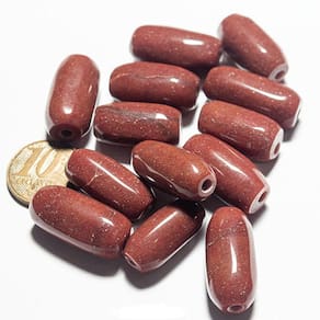 Pedra Quartzo Vermelho 20 a 25 mm Tipo B, Lapidado tipo Barril Furado vasado HORIZONTAL ou longitudinaltural a espessura do furo 3 mm aproximadamente para montagem de artesanato Pingente, colar ou Pulseira.