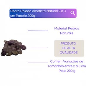 Pedra Rolada Ametista Natural 2 a 3 cm Pacote 200g