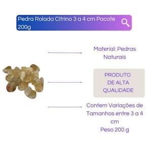 Pedra Rolada Citrino 3 a 4 cm Pacote 200g Pedra Rolada Citrino 3 a 4 cm Pacote 200g