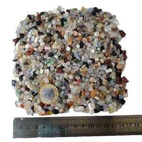 1kg Pedra Rolada Natural Sortida Mista Cascalho 1kg Pedra Mista Cascalho Pacote fechado de 1 Kg contendo pedras roladas mistas com tamanhos que variam entre 0,4 A 1CM aproximadamente. POR FAVOR LEIA COM ATENÇÃO TODA A DESCRIÇÃO. - Ágatas - Cristais - Quartzo- ametista- Citrino- Sodalita entre outras - Quantidade: 1kg de pedra sortida e misturada - Tamanho: 0,4 a 1cm * ATENÇÃO: AS PEDRAS TEM TAMANHO ENTRE 0,4 A 1CM APROXIMADAMENTE * Imagem ilustrativa , produto 100% natural Entenda a classificação de tamanhos das pedras que pode compor esse pacote de pedras de 0,4 A 1CM: 0,4 A 1CM = Pedra Rolada Cascalho * Por passarem por processo de rolagem e polimento as pedras podem conter trincas e fissuras naturais.