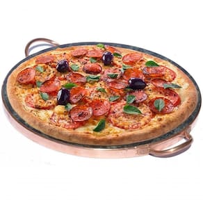 Nossa forma de pedra-sabão mantém o calor por mais tempo, assando a massa de maneira uniforme e garantindo uma crosta crocante por fora e macia por dentro.