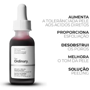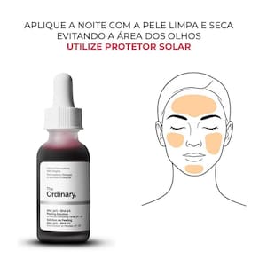 Peeling Solution AHA 30% + BHA 2% - 30ml - The Ordinary O Peeling Solution AHA 30% + BHA 2% da The Ordinary é um esfoliante químico de uso caseiro e alto desempenho. Desenvolvido para usuários experientes, melhora a textura da pele, uniformiza o tom, desobstrui poros e reduz a aparência de marcas e imperfeições. Com ácido glicólico, salicílico e ativos calmantes, oferece renovação intensa com segurança.