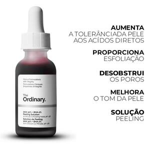 Peeling Solution AHA 30% + BHA 2% - 30ml - The Ordinary O Peeling Solution AHA 30% + BHA 2% da The Ordinary é um esfoliante químico de uso caseiro e alto desempenho. Desenvolvido para usuários experientes, melhora a textura da pele, uniformiza o tom, desobstrui poros e reduz a aparência de marcas e imperfeições. Com ácido glicólico, salicílico e ativos calmantes, oferece renovação intensa com segurança.