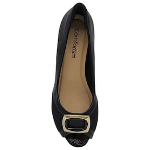 Esse sapato feminino estilo peeptoe da Comfortflex foi desenvolvido para oferecer estilo com total conforto. Seu design moderno traz um cabedal em material de alta qualidade com acabamento brilhante e aplicação de malha ajustável, que se molda suavemente aos pés, especialmente na região do joanete. O detalhe metalizado na parte frontal acrescenta um toque refinado ao visual.