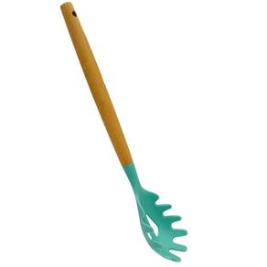 Leve mais praticidade e estilo para a sua cozinha com este pegador de massa de silicone com cabo de madeira!