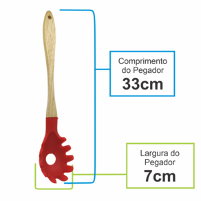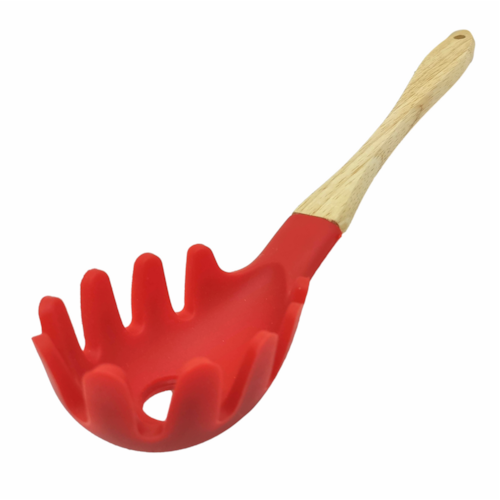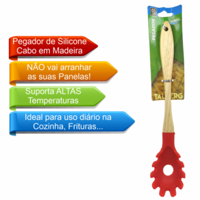 Pegador de Silicone Massa Macarrão Salada Utensílio de Cozinha Cabo de Madeira Vermelho