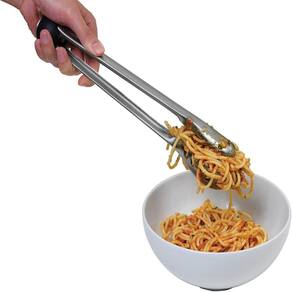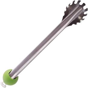 Um dos braços da pinça é uma colher e graças a esta construção se torna prático para utilização em espaguete e outras massas.
