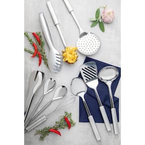 Pegador Multiuso Tramontina Utility Em Aço Inox Pegador Multiuso Tramontina Utility em Aço Inox Cada alimento precisa do tipo certo de utensílio na hora de prepará-lo ou serví-lo. Com o Pegador Multiuso Tramontina Utility você tem muito mais praticidade na hora das refeições, já que ele pode ser utilizado de modo bastante versátil. Por ser totalmente em aço inox, não solta resíduos mantendo suas refeições muito mais saudáveis, seu acabamento em brilho deixará sua mesa ainda mais charmosa e pode ser levado à máquina de lavar louças sem ser . É muita praticidade!