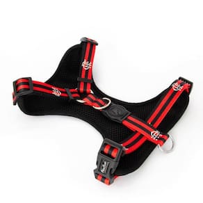 o peitoral air da freefaro é sinonimo de conforto, leveza e segurança. É perfeito para quem deseja todo o estilo que a free pode proporcionar, sem abrir mão do conforto do seu pet. Com listras horizontais nas cores do clube e o crf no peito, o peitoral air freefaro mengo é o clássico dos clássicos. Base feita em neoprene modela-se perfeitamente ao corpo do cachorro. Tira em poliéster super macio, resistente e durável. Tecnologia intransfer garante a estampa com cores mais vivas. 100% ajustável ao corpo do animal não esqueça de verificar o tamanho ideal para o seu pet . Fecho resistente com engate rápido e 4 pontos de segurança. Tamanho: m largura da fita cm : 2 circun. Do pescoço cm : 41 a 54 circun. Da cintura cm : 48 a 66 Marca: Free Faro