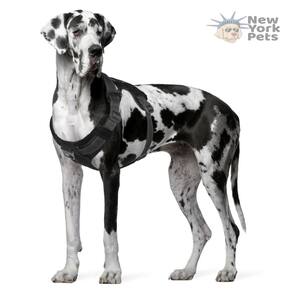 Este arnês para cães apresenta material reflexivo para aumentar a visibilidade, bem como um crachá para informações de contato de emergência do animal de estimação e do proprietário. Disponível em vários tamanhos.