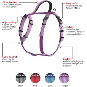 Peitoral de Passeio para Cachorro Halti Walking Harness M Porque aconselhamos: - Este peitoral evita a pressão excessiva no peito do cão, garantindo uma grande mobilidade, conforto e controle; - O design único deste peitoral, o mantém seguro no lugar na região do peito dos cães; - Com 5 níveis de ajuste, é perfeito pois garante a colocação e retirada com tranquilidade entre as caminhadas.