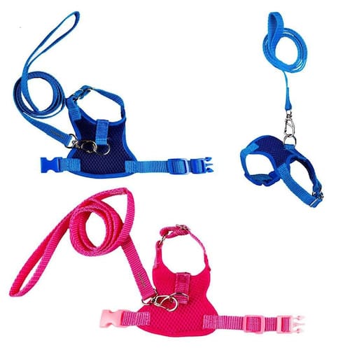Principais características: - Kit com 2 coleiras peitorais para porquinho da índia - Peitoral em tecido aerado - Ajustável no pescoço e abdômen - Guia de nylon de 90 cm - Tamanho único - Cores disponíveis: azul e rosa