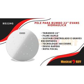 Descrição do produto: Pele para bumbo 22 evans hidráulica glass bd22hg level 360