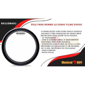 Pele evans emad2 bd22emad2 22 filme duplo para bumbo transparente