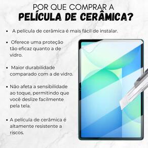 Película cerâmica para galaxy tab s10 fe 10.9 polegadas x526 Cor: transparente proteja a tela do seu tablet com a incrível película de cerâmica, a solução definitiva para manter seu dispositivo impecável. ------------------ Atenção ------------------ Compatível com samsung tab s10 fe 10.9 polegadas x526 x520 2025 . Modo de uso: 1- limpe a tela do seu tablet, após esta limpa remova uma parte da película protetora e centralize a película de cerâmica no tablet. Com a ajuda de um cartão, sem fazer força deslize para firmar por todo comprimento. Caso apareçam bolhas, empurre novamente em direção às bordas do tablet. caso tenha dificuldade você pode nos enviar mensagem no chat da compra Que iremos enviar um vídeo auxiliando na aplicação. ------------------ ------------------ a película de cerâmica afeta a sensibilidade ao toque R: não, a película é projetada para não interferir na sensibilidade ao toque dos dispositivos. Elas possuem uma camada ultra fina que mantém a capacidade de resposta da tela intacta, permitindo que você utilize o dispositivo normalmente sem problemas de perda de sensibilidade ao toque. por que devo escolher uma película de cerâmica para o meu tablet R: a película de cerâmica oferece uma proteção avançada contra arranhões, mantendo a tela do seu tablet livre de danos e preservando sua clareza de imagem. como a película de cerâmica contribui para a longevidade do tablet R: graças à sua resistência avançada a arranhões e impactos leves, a película de cerâmica ajuda a proteger a tela do tablet, prolongando sua vida útil e evitando danos indesejados. a película de cerâmica é compatível com o uso de canetas stylus posso usar a capa com película A capa não levanta a película R: sim, é possível usar a capa com a película. A capa possui recortes precisos ao qual não se levanta a película. ------------------ Especificações ------------------ Material: cerâmica. Compatível com samsung tab s10 fe 10.9 polegadas x526 x520 2025 . ------------------ Conteúdo ------------------ 1x película de cerâmica transparente. 1x kit limpeza. Anúncio referente a película não incluso - qualidade garantida. - atendimento qualificado. - enviamos para todo o brasil. - compra garantida. - despachamos em até 1 dia útil após confirmação do pagamento Garantimos a devolução por arrependimento em até 7 dias, após o recebimento e de 15 dias contra defeitos de fabricação. Homologação Anatel: 101412208726