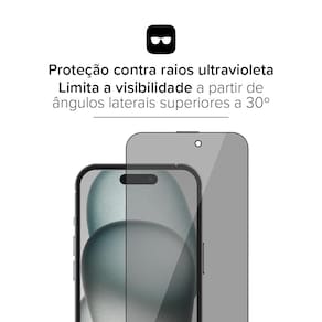 Especificações Película de vidro temperado ansparente com borda Filtro polarizador que limita a visão lateral da tela Matéria-prima japonesa (Asahi Glass) Espessura de 0,33mm Protege a tela contra riscos e pequenas batidas Não afeta a sensibilidade da tela