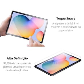 A película é projetada especificamente para o tablet s6 lite, com cortes precisos para garantir que ela se encaixe perfeitamente na tela do dispositivo. Ela também é revestida com um adesivo de silicone de alta qualidade que facilita a aplicação e não deixa resíduos quando removido.