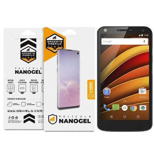 Película de proteção em Nano Gel, cobre as extremidades curvadas do visor, inclui película reserva.Tipo