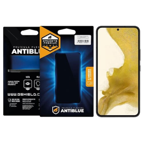 Você está cansado de sofrer os efeitos nocivos da luz azul? Estresse, dores de cabeça, fadiga ocular e insônia são alguns dos problemas enfrentados pelo uso excessivo do celular. Se você procura uma solução para esses problemas, então a Película AntiBlue da Gshield, é exatamente o que você precisa! A Antiblue da Gshield é fabricada com tecnologia especial para bloquear 99% da luz UV azul Prejudicial à saúde emitida pelo smartphone durante o seu uso, ela protege tanto seus olhos quanto sua pele; reduz significativamente os reflexos luminosos e também melhora drasticamente o sono noturno regulando melhor as ondas cerebrais com base na frequência da luz azul emitida pela tela do celular, proporcionando assim um bem-estar mental maior durante todo o dia! Não há nada melhor do que realizar dois investimentos em um só: Cuidar da sua saúde e do seu bem material, por isso a película AntiBlue é perfeita para você! Protege o seu Samsung Galaxy S22 e a sua saúde! Principais diferenciais da AntiBlue: Previne o ressecamento dos olhosPrevine o ressecamento da pele)Segura para uso contínuoTecnologia Anti-risco