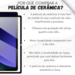 Película protetora cerâmica para tablet samsung s9 11 x710 Cor: transparente com borda proteja a tela do seu tablet com a incrível película de cerâmica, a solução definitiva para manter seu dispositivo impecável. ------------------ Atenção ------------------ Compatível com: tablet samsung tab s9 11 x710 x716. Modo de uso: 1- limpe a tela do seu tablet, após esta limpa remova uma parte da película protetora e centralize a película de cerâmica no tablet. Com a ajuda de um cartão, sem fazer força deslize para firmar por todo comprimento. Caso apareçam bolhas, empurre novamente em direção às bordas do tablet. caso tenha dificuldade você pode nos enviar mensagem no chat da compra Que iremos enviar um vídeo auxiliando na aplicação. ------------------ ------------------ a película de cerâmica afeta a sensibilidade ao toque R: não, a película é projetada para não interferir na sensibilidade ao toque dos dispositivos. Elas possuem uma camada ultrafina que mantém a capacidade de resposta da tela intacta, permitindo que você utilize o dispositivo normalmente sem problemas de perda de sensibilidade ao toque. por que devo escolher uma película de cerâmica para o meu tablet R: a película de cerâmica oferece uma proteção avançada contra arranhões, mantendo a tela do seu tablet livre de danos e preservando sua clareza de imagem. como a película de cerâmica contribui para a longevidade do tablet R: graças à sua resistência avançada a arranhões e impactos leves, a película de cerâmica ajuda a proteger a tela do tablet, prolongando sua vida útil e evitando danos indesejados. a película de cerâmica é compatível com o uso de canetas stylus posso usar a capa com película A capa não levanta a película R: sim, é possível usar a capa com a película. A capa possui recortes precisos ao qual não se levanta a película. ------------------ Especificações ------------------ Material: cerâmica Compatível com: tablet samsung tab s9 11 x710 x716. ------------------ Conteúdo ------------------ 1x película de cerâmica 1x kit limpeza. Anúncio referente a acessórios Tablet não incluso - qualidade garantida. - atendimento qualificado. - enviamos para todo o brasil. - compra garantida. - despachamos em até 1 dia útil após confirmação do pagamento Garantimos a devolução por arrependimento em até 7 dias, após o recebimento e de 15 dias contra defeitos de fabricação. Homologação Anatel: 000521203111 Marca: Não Informado Ean: 7794119390604