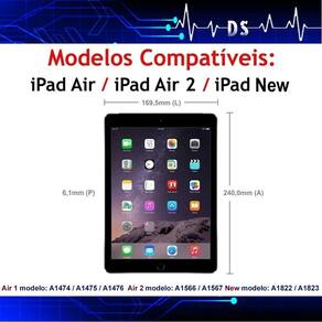 Características Marca da tablet compatível Ipad Pad - A1474 / A 1475 / A 1476 / A 1822 / A 1823 Pad 5 geração - A1822 / A1823 Pad 6 geração - A1893 / A1954