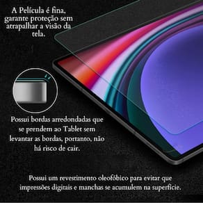 Película vidro para novo galaxy tab s9 ultra 14.6 polegadas Cor: transparente a película é um item muito importante a se usar no seu dispositivo, pois a película é responsável por proteger o seu aparelho de possíveis danos como riscos, quedas, além de ser altamente resistente. a película é elaborada de vidro temperado, tem a sua transparência totalmente cristalina, não perde sensibilidade ao toque, fixação por estática, sendo super fácil de aplicar e remove-la, sem afetar a tela do dispositivo. é extremamente segura. Caso a película seja quebrada, as partículas formadas não são afiadas e ficam aderidas à camada adesiva de silicone, tornando-o muito mais seguro que as outras películas. --------------- Atenção --------------- Compatível com galaxy tab s9 ultra 14.6 polegadas 2023 . modo de uso: 1- a instalação é super fácil, basta alinhar a película com a tela do tablet, que deverá ser previamente limpa, enviaremos um kit de limpeza, e dar uma pequena pressão no centro da película para que a adesão seja completa e sem bolhas. caso tenha dificuldade você pode nos enviar mensagem no chat da compra Que iremos enviar um video auxiliando na aplicação. ---------------------------------------- ---------------------------------------- é compatível com o samsung tab s9 ultra 14.6 polegadas 2023 R: sim. A película é específica para esse modelo e servirá perfeitamente. é compatível com o samsung tab s9 11 polegadas / tab s9 plus 12.4 polegadas R: não. A película não é compatível com esse modelo. posso usar a capa com película A capa não levanta a película R: sim, é possível usar a capa com a película. A capa possui recortes precisos ao qual não levanta a película. -------------------- Especificações: -------------------- Material: vidro temperado. Peso: 15g. Largura: 20,8cm. Altura: 32,5cm. Compatível com galaxy tab s9 ultra 14.6 polegadas 2023 / tab s8 ultra 14.6 x900 x906. -------------------- Contéudo: -------------------- 1x película vidro temperado. 1x limpa telas. Atenção: Aanúncio referente somente a película Tablet não incluso -------------------- Apresentação: -------------------- Atuamos no mercado desde 2019 como loja de departamentos. Nosso principal compromisso é sempre estar inovando e oferecendo variados produtos com qualidade incomparável, para que você tenha uma experiência mágica e única ao obter os nossos produtos. Todos os nossos produtos passam por um amplo teste de qualidade antes de serem vendidos. Os produtos são testados e vistoriados antes de serem enviados aos clientes, para não ocorrer transtornos. Procuramos embalar os produtos da melhor forma possível, para que o mesmo não venha sofrer durante o transporte e corra o risco de chegar danificado ao consumidor. Nossa equipe é totalmente qualificada e estaremos a disposição para esclarecer as suas dúvidas, solucionar os seus problemas e fornecê-los o melhor atendimento possível. - qualidade garantida. - atendimento qualificado. - enviamos para todo o brasil. - compra garantida. - despachamos em até 1 dia útil após confirmação do pagamento Garantimos a devolução por arrependimento em até 7 dias, após o recebimento e de 15 dias contra defeitos de fabricação Marca: Não Informado