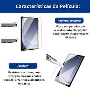 Proteção impenetrável para o seu samsung galaxy tab a9+ 11 com a película de vidro temperado 9h defenda seu precioso dispositivo com o escudo mais resistente e durável do mercado. Sinta a tranquilidade de saber que sua tela está protegida contra riscos, arranhões e impactos indesejados.