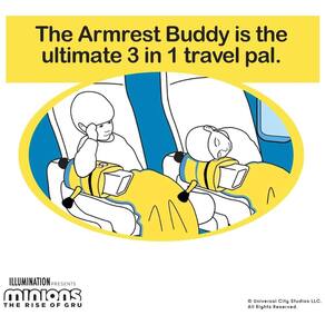 O Minion Armrest Buddy é um travesseiro de viagem infantil exclusivo do Bob the Minion, ideal para tornar qualquer viagem mais confortável. Transforme o apoio de braço do assento em um travesseiro aconchegante para a criança descansar a cabeça durante viagens de avião, trem, ônibus e carro.