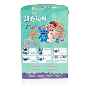 A pelúcia Chatty Stitch fala mais de 50 frases e sons em sua voz alienígena Tantalog, além de ter boca móvel, cabeça giratória, orelhas articuladas e sensores de toque na cabeça e no nariz. A tecnologia de sincronização labial permite que ele fale e se mova de maneira natural, tornando a brincadeira ainda mais envolvente.