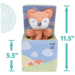FOX IN A BOX Fox in a Box é a nova versão de pelúcia macia do Baby GUND para Jack in the Box A caixa da adorável raposa de pelúcia é adornada com ilustrações coloridas, enquanto a raposa mantém o bebê envolvido e surpreso com efeitos sonoros e música caprichosos. JOGO INTERATIVO Toque em qualquer lugar na caixa macia para persuadir Emory a sair de seu esconderijo para um jogo interativo de esconde esconde, ou pressione o botão para cantar uma nova música divertida com a voz de uma criança fofa. PERFEITO PARA PRESENTES DE BERÇÁRIO E REGISTRO Seja para decoração de berçário ou para comemorar um chá de bebê, o primeiro aniversário do bebê ou qualquer outra ocasião, os brinquedos de bebê premium GUND são ótimos presentes práticos e sem tela para crianças de todas as idades. CARINHOS DE QUALIDADE Nossos ursos e brinquedos premiados atraem os amantes de animais em todos os lugares, conhecidos por sua qualidade incomparável e designs abraçados. De bebês e crianças a adultos de todas as idades, os brinquedos GUND são perfeitos para brincar, colecionar e abraçar. PREMIER PLUSH Como o fabricante mais antigo de brinquedos macios da América, a GUND cria ursinhos de pelúcia e bichos de pelúcia exclusivos e clássicos há 125 anos. Até hoje, carregamos com orgulho esse legado e defendemos nossos brinquedos, conhecidos mundialmente pela qualidade e inovação Marca: Não Informado