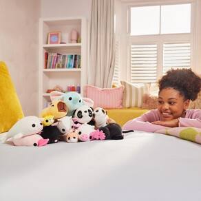 Além do efeito , os personagens da linha Hug-A-Lumps Baby encantam com seus olhinhos meigos, cores suaves e design acolhedor. São 11 modelos adoráveis para conhecer, como a Topeira Jeremy, a Gata Luna, a Elefanta Eliza, o Ornitorrinco Perry, a Vaca Clover, a Girafa Gigi, a Capivara Connie, a Foca Sandy, a Cabra Graham, o Canguru Jess e a Preguiça Sydney, cada um com sua personalidade única e charme especial. Com visual encantador e sensação tátil envolvente, essa pelúcia é muito mais que um brinquedo é uma dose diária de afeto.