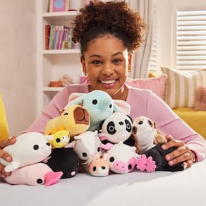 Além do efeito , os personagens da linha Hug-A-Lumps Baby encantam com seus olhinhos meigos, cores suaves e design acolhedor. São 11 modelos adoráveis para conhecer, como a Topeira Jeremy, a Gata Luna, a Elefanta Eliza, o Ornitorrinco Perry, a Vaca Clover, a Girafa Gigi, a Capivara Connie, a Foca Sandy, a Cabra Graham, o Canguru Jess e a Preguiça Sydney, cada um com sua personalidade única e charme especial. Com visual encantador e sensação tátil envolvente, essa pelúcia é muito mais que um brinquedo é uma dose diária de afeto.