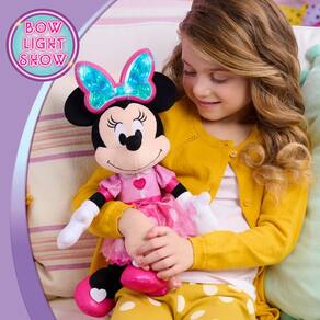 - Padrões, Luzes e Diversão: Celebre as cores brilhantes e os lindos padrões de luz com a pelúcia Disney Jr. Colorfinity Minnie Mouse. Esta pelúcia interativa apresenta frases, músicas e um laço brilhante que acende em 9 cores diferentes e padrões deslumbrantes.