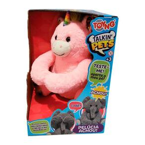 Pelúcia Interativa - Talkin Pets - Pelúcia Achou - Unicórnio - Toyng: os pets mais fofinhos e divertidos do momento estão prontos para fazer a alegria das crianças. A coleção Talkin Pets apresenta uma série de animais realistas com movimentos, sons e funções incríveis para divertir as crianças apaixonadas com os bichinhos. Com a aparência muito fofa, a pelúcia Talkin Pets Unicórnio esconde o rostinho e revela na sequência falando “Achou!”. As crianças brincam com essa pelúcia falante super divertida. Com texturas macias e confortáveis para brincar de montão com as crianças. Informações: • Produto: Pelúcia Interativa Pelúcia Achou! • Marca: Toyng • Modelo: Unicórnio • Coleção: Talkin Pets • Tipo: Pelúcia Interativa • Categoria: Pelúcias e Acessórios Plush • Conteúdo: 1 Pelúcia Achou! • Recomendação: para crianças a partir de 03 anos de idade Especificações: • Referência: 48850 • Código de Barras: 7899871619526 • Embalagem (C x A x L): 21,5 x 29 x 20 cm • Embalagem (Peso): 0.580 g • Material / Composição: Poliéster e Algodão • Alimentação: 03 Pilhas AA (Inclusas para teste) • Registro: 001423/2022 • Certificado: Órgãos Autorizados - OCP´S (Organismos de Certificação de Produtos) Benefícios de brincar: • Eleva a autoestima • Exercita a memória • Estimula o raciocínio • Exercita o imaginário • Desenvolve a criatividade • Desenvolve percepção visual • Desperta a atenção e curiosidade • Desenvolvimento neuropsicológico • Estimula habilidades motoras básicas • Incentiva a comunicação e linguagem • Desenvolve aspectos emocionais e afetivo • Estimula o reconhecimento de formas e cores Aviso: • As imagens são meramente ilustrativas • Os tamanhos e medidas são aproximados • As cores e estampas dos produtos podem ter variações • As informações são de responsabilidade do fabricante ou fornecedor