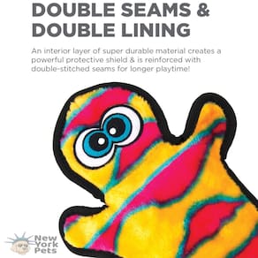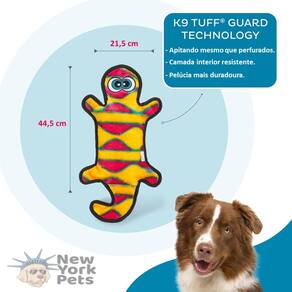Brinquedo feito com material ultra resistente e durável com costuras reforçadas para uma diversão muito duradoura. Possui uma camada interna de tecido ultra reforçado K9 para formar um escudo de proteção. Sem recheio para não bagunçar a casa, caso rompido. Dedicado à cães de mordida moderada a forte. Possui apitos chamados “invincibles” que continuam apitando mesmo que perfurados. Seu corpo achatado e com os apitos encapados tornam um brinquedo ideal para lutas intermináveis e brincadeiras de cabo de guerra.