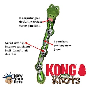 KONG Knots Snake é um brinquedo desenvolvido para cães de mordida leve/moderada.