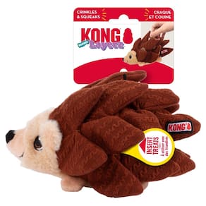 Os brinquedos Kong Layerz Forage são projetados para estimular a curiosidade e o instinto natural de forrageamento dos cães. Com designs divertidos, como galinha, ouriço e tatu, estes brinquedos são ideais para brincadeiras interativas.