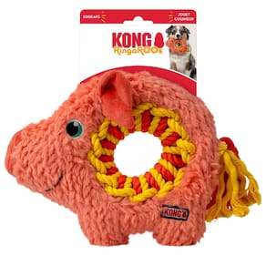 Os KONG Ringaroos são brinquedos interativos projetados para proporcionar diversão e estímulo aos cães. Com designs encantadores de porco e elefante, esses brinquedos são ideais para brincadeiras ativas e momentos de diversão.