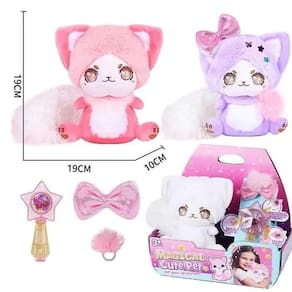 Vantagens do brinquedo: tamanho com cauda: 19×32×19 cm; feito no formato de um animal fofo com grandes olhos expressivos; Inclui: varinha mágica, grampo de cabelo e anel; O longo rabo fofo do brinquedo pode ser decorado; tecido agradável ao toque e enchimento macio (acolchoamento sintético); grânulos especiais na parte inferior do brinquedo garantem durabilidade; Ideal como presente para qualquer ocasião.