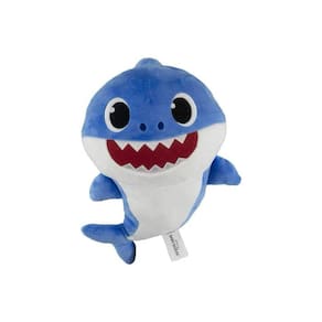 Baby Shark é um desenho infantil que fala sobre uma família de tubarões. A Pelúcia Baby Shark. É só apertar para escutar a música tema do desenho. Feita de Poliéster com 3 opções de sortimento para comprar: Mommy Shark, Daddy Shark e Baby Shark! A Diversão é garantida. Requer 3 baterias LR44. Instruções de Uso - após retirar a pelúcia da embalagem tem que retirar o lacre para ouvir a música.