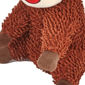 Apesar de super resistente, a experiência sensorial é incrível! Seu exterior é revestido com um macio tecido chenille, com aquela textura de "loop" que os cães adoram morder e amassar. As patinhas, as presas, a barriga e o interior das orelhas são feitos de um peluche liso e suave, oferecendo um contraste de texturas que torna o brinquedo ainda mais interessante.