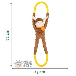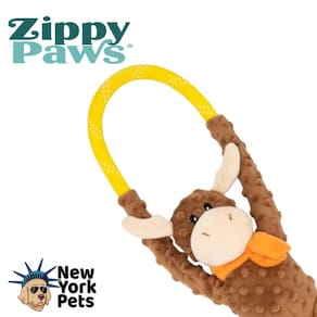 O cabo de guerra ficou muito mais divertido com o Alce RopeTugz® da ZippyPaws! Com corda durável enrolada em todo o corpo, este brinquedo de corda extra resistente pode suportar horas de brincadeira heroica de cabo de guerra com seu cãozinho. Utilizando a mesma corda de escalada durável usada em nossas coleiras Climbers, os brinquedos para cães RopeTugz® são projetados para brincadeiras de puxar. Cada brinquedo RopeTugz® inclui 1 grande apito redondo em seu corpo de pelúcia macio. Não é para mastigação pesada.