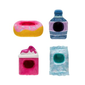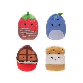Contém: 4 Mini-Pelúcias Squishville e 4 Fantasias