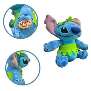 Encante-se com a Pelúcia Stitch Hula Hula de 30cm Esta adorável pelúcia é uma representação irresistível do amado personagem Stitch, trazendo consigo todo o encanto da dança havaiana Com seus 30cm de altura, esta pelúcia é perfeita para abraçar e exibir em qualquer lugar Mas o que realmente a torna especial é o seu incrível mecanismo de luz e som Ao apertar, você será transportado para as ensolaradas praias do Havaí, com luzes brilhantes e sons tropicais que vão alegrar seu dia