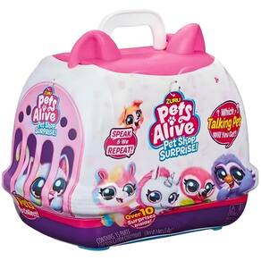 O Pet Shop Surprise de Pets Alive são animais de estimação perfeitos para você adotar. Eles repetem o que você fala e tem sons de animais e mais de 10 surpresas dentro, esses bichinhos são seus novos melhores amigos, ideais para abraçar e interagir! Para descobrir qual animal você adotou, abra o transportador de animais de estimação e, em seguida, comemore a adoção com todas as surpresas de festa dentro, como chapéu de festa DIY, caixa de cupcake e muito mais! São 6 animais de estimação para conhecer: gato, cachorro, flamingo, bicho-preguiça, lhama e unicórnio! Qual animal de estimação será seu novo melhor amigo?