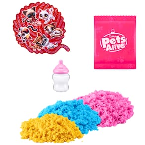 Esses encantadores gatinhos emitem 20 sons diferentes, proporcionando uma experiência interativa e cativante. Eles podem ronronar, miar e até mesmo fazer sons de brincadeiras, trazendo vida ao mundo imaginário dos pets. Cada conjunto de Pets Alive Smitten Kittens acompanha uma garrafinha e uma porção de areia, permitindo que as crianças cuidem dos seus "animais de estimação". Obs : Item surpresa , não é possível escolher o pet.